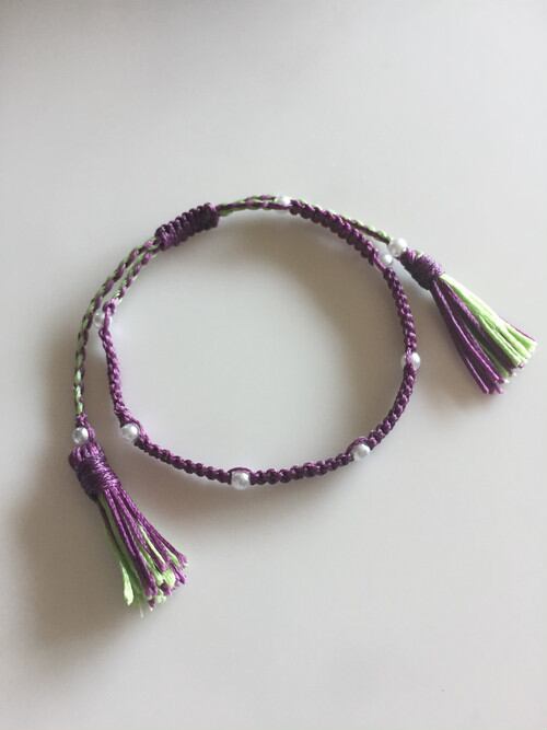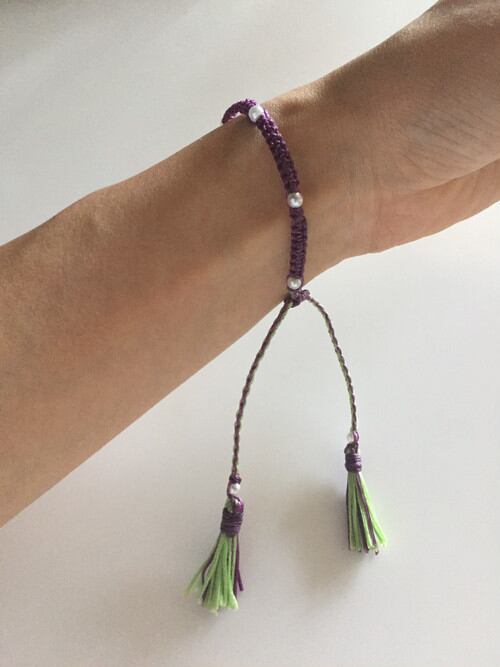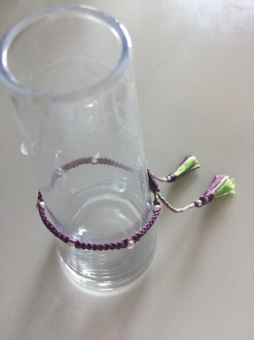 パールとタッセルがついた贅沢ブレスレットです。