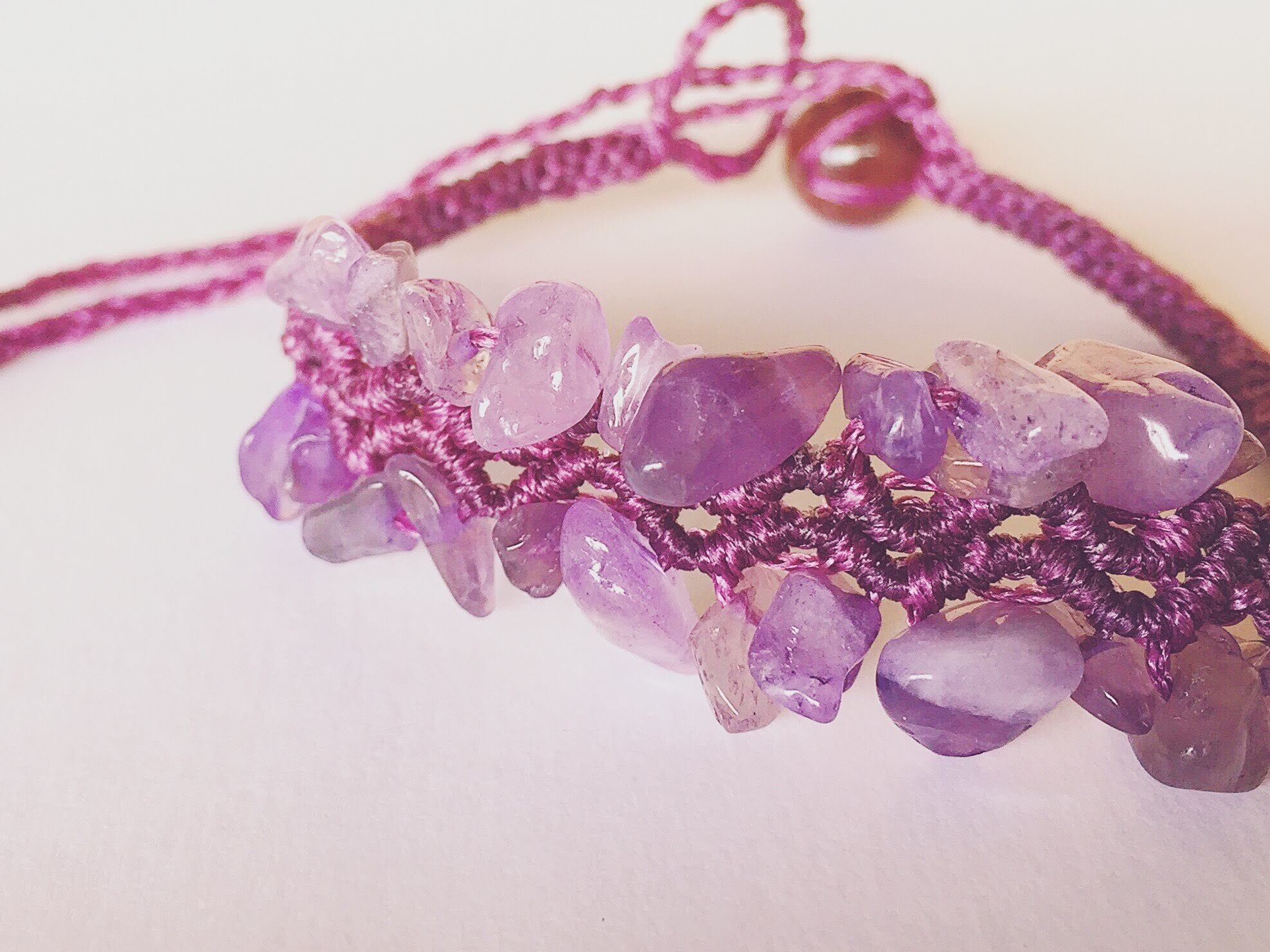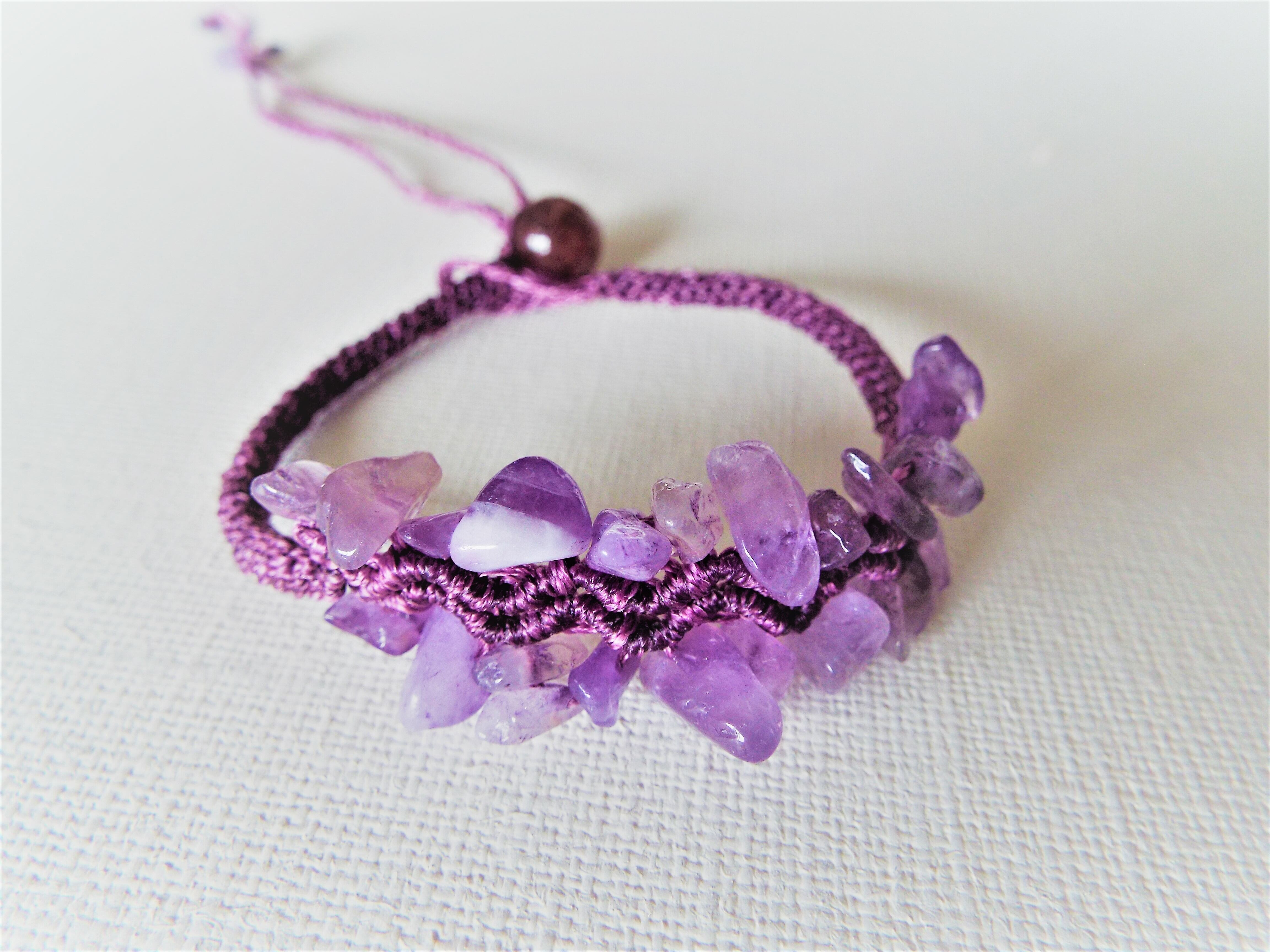 紫色がシックなアメジストのブレスレットです。