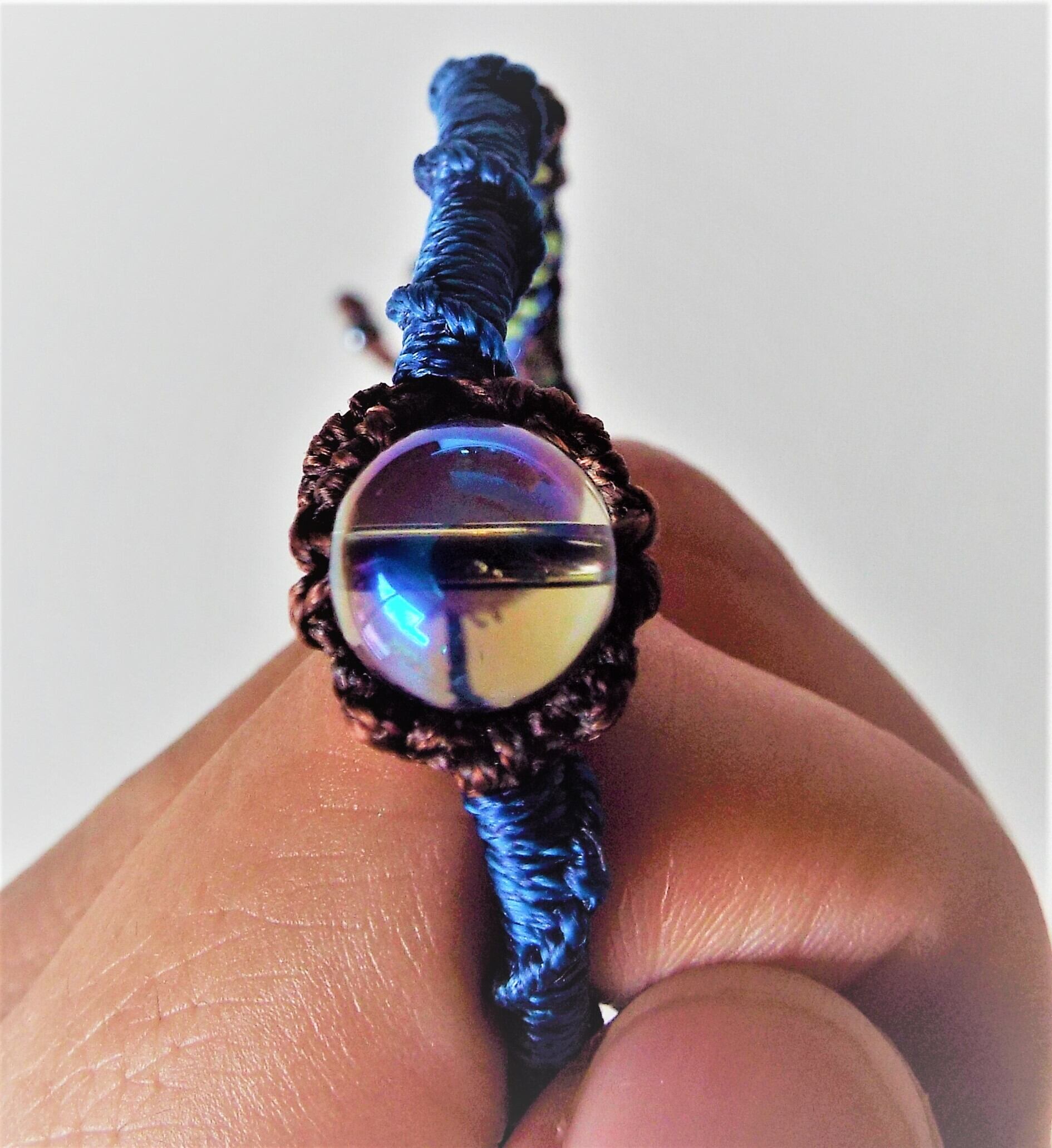 ブルークォーツをマクラメ糸で丁寧に編んで作ったブレスレットです。