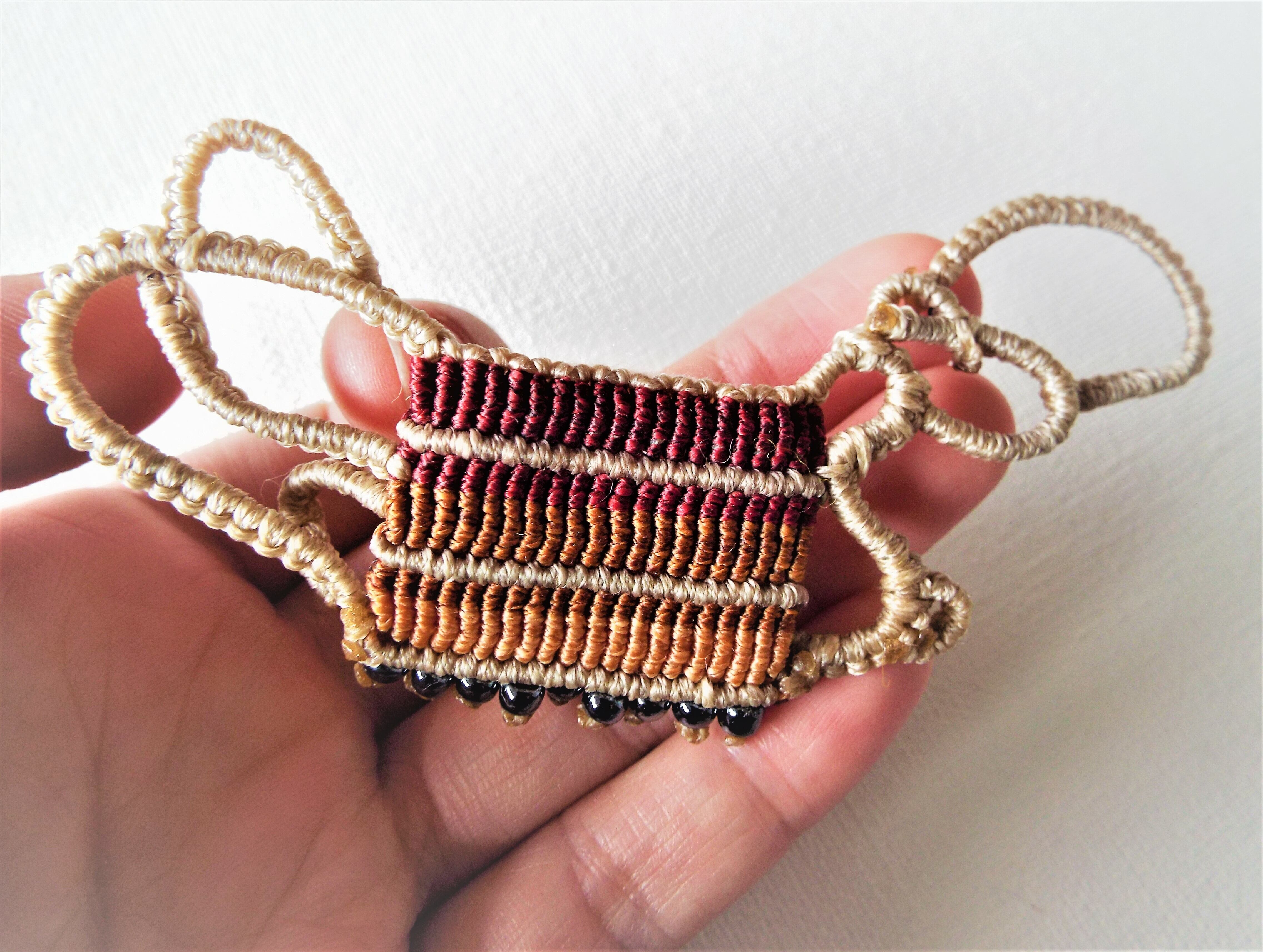・マクラメ編みの特性上、編み終わりに焼き留め処理をする為に焼き後がございます